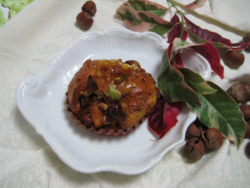 手作りのカラメルを生地に練り込んで、ヘーゼルナッツ、ピスタチオ、