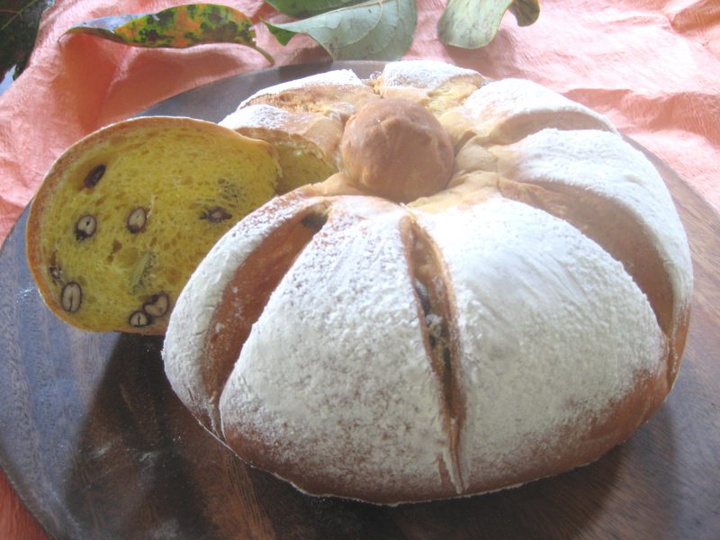 カボチャを練り込んだパン生地に小豆とパンプキンシードを合わせて